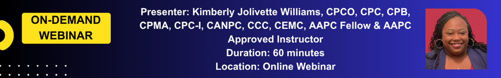 With a focus on CCI edits, CPT® inclusions, modifier usage, and proper documentation, Kimberly will equip attendees with actionable strategies to avoid denials, promote compliance, and achieve equitable reimbursement.