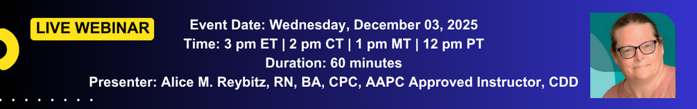 Alice Marie Reybitz is an RN in the State of Florida. She has been a Biller and Coder since 1998. She has worked undercover for the FBI in Medicare fraud. She has been a nursing and a coding instructor. She has spoken at AHIMA and AAPC symposiums and conferences. She has written several articles for professional coding journals. She just recently earned her Certified Death Doula Designation to assist Hospice patients and their families.