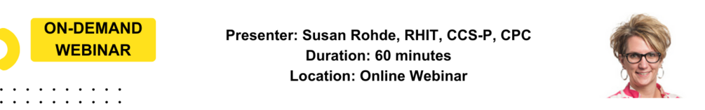Susan Rohde, RHIT, CCS-P, CPC, has more than 28 years of experience in health care industry with an emphasis in coding, health information management, medical necessity and documentation. Susan is currently serving on the education committee for NSCHBC. Her other memberships include AHIMA, NDHIMA, AAPC, NSCHBC, HFMA and MGMA. She specializes in reviewing documentation for accurate reimbursement within Evaluation and Management (E/M) and all surgical specialties, including Interventional Radiology, Anesthesia, Neurosurgical, and Orthopedics, for both ICD-10-CM and CPT codes. Susan helps navigate the ever-changing coding and documentation world and can help your organization in maximizing its coding potential via proper documentation, provider and coding staff education, and understanding of guidelines and regulations.