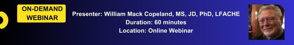William Mack Copeland, MS, JD, PhD, LFACHE, practices health care law in Cincinnati at the firm of Copeland Law, LLC. A graduate of Northern Kentucky University Salmon P. Chase College of Law, Bill is a frequent author and speaker on health law topics. Copeland is a member of the American Health Lawyers Association, American, Ohio and Cincinnati Bar Associations and is a life fellow in the American College of Healthcare Executives. A former hospital chief executive officer, he was awarded the American College of Health Care Executives Senior-Level Healthcare Executive Regent’s Award in 2007.